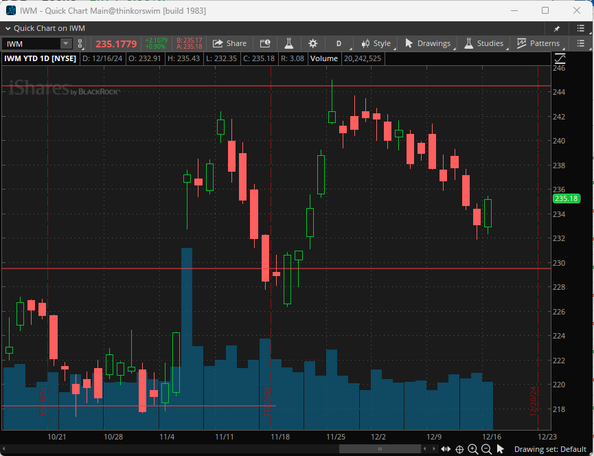 Now, as you are probably aware, with the cacophony of concentration and breadth blather, that IWM was down from its open almost every day since late November until today: